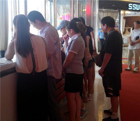 圖為顧客在服務臺排隊交款