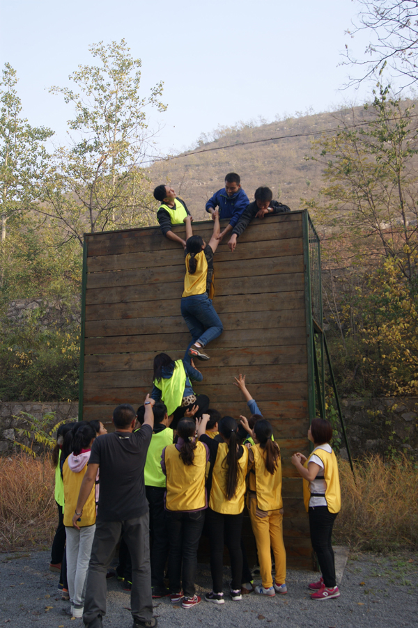 面對(duì)4.2米高的筆直木板墻,沒(méi)有任何工具,怎么樣才能跨越?“翻越畢業(yè)墻”訓(xùn)練項(xiàng)目就是要考驗(yàn)人們的合作意識(shí),團(tuán)隊(duì)協(xié)作精神。因?yàn)楣饪繂我粋€(gè)人是無(wú)法完成的,大家必須通力合作,才能互利共贏(yíng)。畢業(yè)墻訓(xùn)練讓張連有感觸頗深,“只要大家團(tuán)結(jié)一致,齊心協(xié)力迎難而上就一定能夠克服所有困難。”