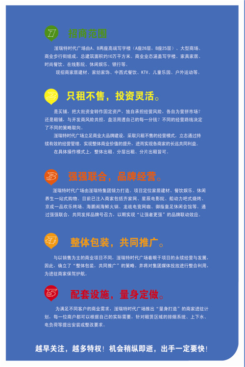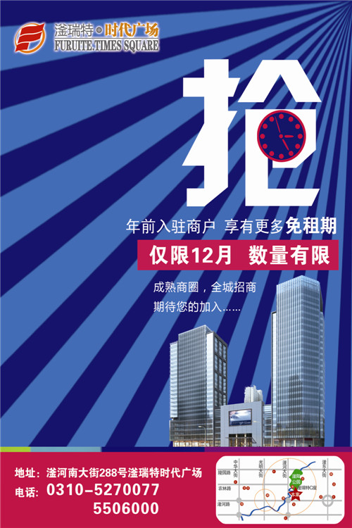 滏瑞特時代廣場與眾多品牌強強聯(lián)手,專門為商家量身定做屬于自己的商鋪!高品質的產品伴隨著優(yōu)質的服務,無論你租與不租,滏瑞特時代廣場就在這里等你!?。?/span>